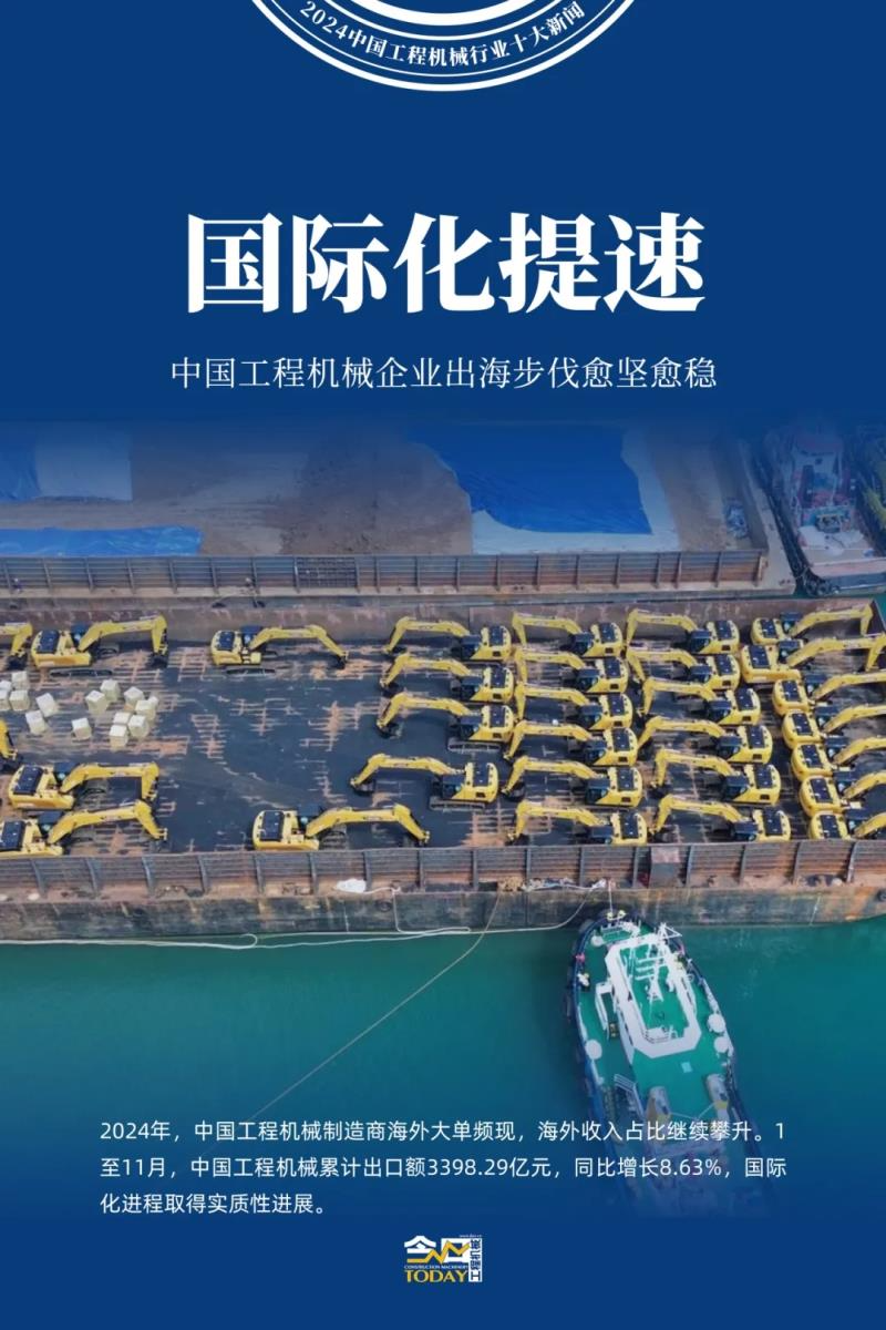 2024年,中国工程机械制造商海外大单频现,海外收入占比继续攀升。1至11月,中国工程机械累计出口额3398.29亿元,同比增长8.63%,国际化进程取得实质性进展。徐工、三一重工、中联重科、柳工等企业海外收入占比纷纷逼近甚至超过50%。出海市场也呈现从东南亚、中亚、南美、非洲、中东等地区向欧美、日韩等发达国家与地区拓展的趋势,逐步抢占高端市场。